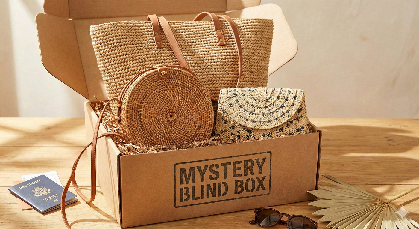 Discover the fun of our Straw Bag Blind Box! Each box includes 2 random straw handbags, selected from a variety of styles — tote, round bag, top-handle, crossbody, bucket, mini, or basket styles. Every order is a unique surprise!